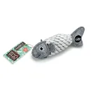 In muted shades of grey, he is composed from a felt head, flippers and tail, with a recycled plastic bottle covered in braided jute rope. Jute is a natural, sustainable plant fibre. The suede used for his eye is a by-product and ensures that this material is not wasted. Tough and long lasting, made without using any compound that would harm or be released when chewed. Jute is 100% biodegradable.